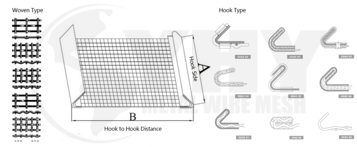 Weaving type: Double crimped, intermediate crimped, flat top crimped, lock crimped.